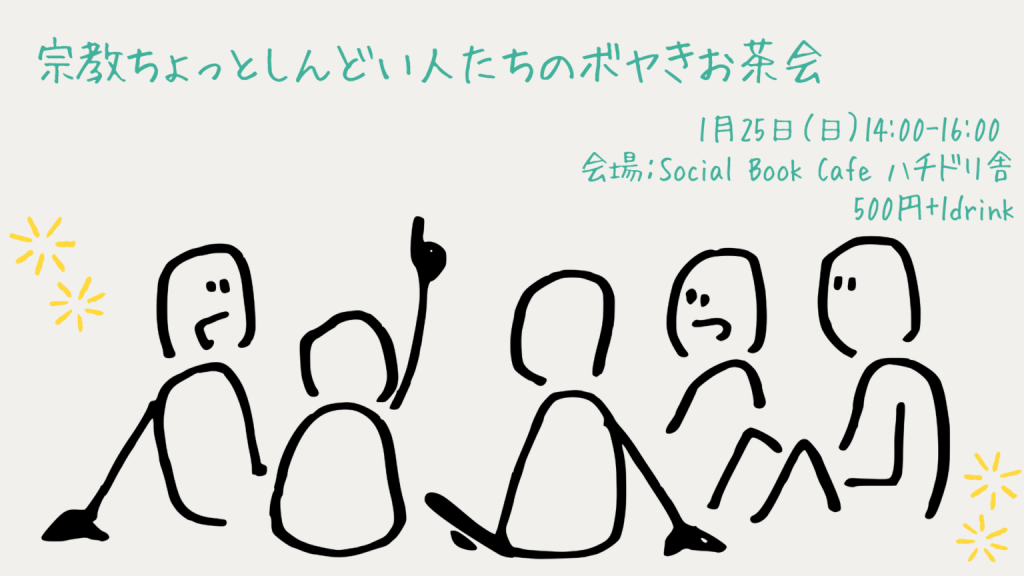 本日は午後から土橋町のハチドリ舎で開催された「宗教ちょっとしんどい人たちのボヤきお茶会」に参加しました。先日も宗教二世に関する裁判の判決が出たばかりですが、新興宗教は社会問題になるような団体も数多く、生の声を聴かせていただく良い機会となりました。
