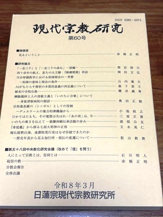 3月31日、日蓮宗現代宗教研究所より、「現代宗教研究」第60号が届きました。昨年、日蓮宗宗務院で開催された教化学研究発表大会での、本覚寺住職の発表原稿が掲載されています。