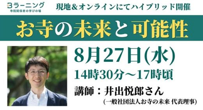 8月27日、福岡市の光薫寺様を会場に「お寺の未来と可能性」として井出悦郎さんの講演を拝聴しま…