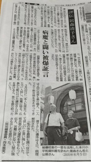 昭和20年(1945)8月6日に当時の本川国民学校(現在の広島市立本川小学校)で被爆され、ただ一人生存…