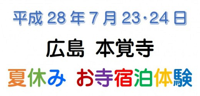 平成28年度 広島本覚寺【夏休み お寺宿泊体験】(満員御礼)