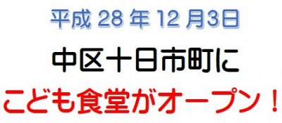 12月3日より広島市中区十日市町にて「こども食堂」がスタートします!