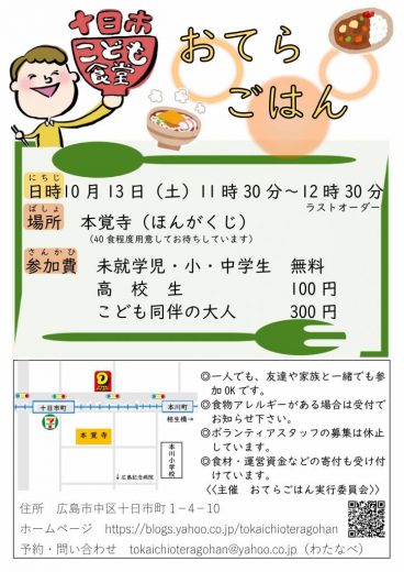 第5回【十日市こども食堂おてらごはん】のご案内(会場 広島市本覚寺)