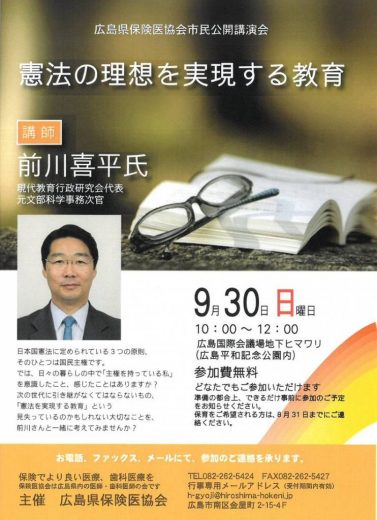 本日9月30日、広島国際会議場で開催された、元文部科学事務次官の前川喜平さんの講演会を聴講しました…