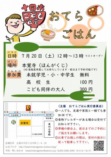 第14回【十日市こども食堂おてらごはん】のご案内(会場 広島市本覚寺)