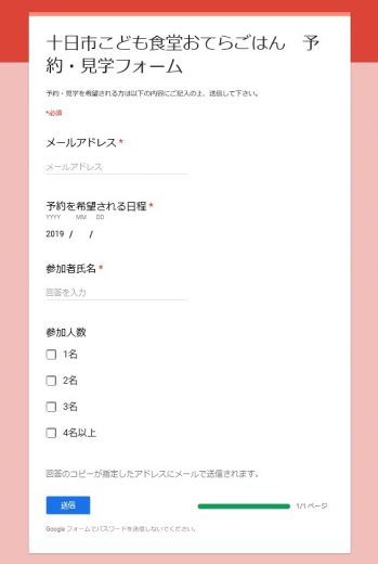 十日市こども食堂おてらごはんの【予約・見学フォーム】を作成しました。