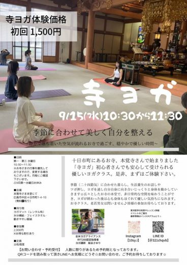 十日市に寺ヨガがやって来る ヤァ!ヤァ!ヤァ!【緊急事態宣言延長により中止します】