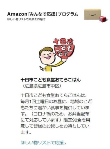 十日市こども食堂おてらごはんが、【Amazon「みんなで応援」プログラム】に登録されました!