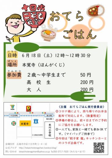 突然ですが、十日市こどもしょくどうおてらごはんでは、5月31日(火曜日)18時から18時30分まで、 某…