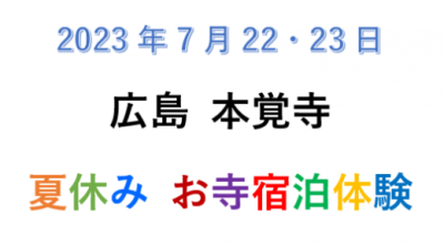 2023年度 広島本覚寺【夏休みお寺宿泊体験】のご案内(キャンセル待ちになりました)