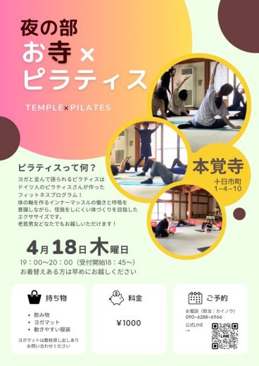 第11回【~心と体に向き合う時間~ お寺×ピラティス】のご案内(主催者の都合により中止)
