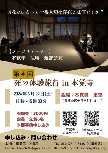 第4回 死の体験旅行Ⓡin本覚寺のご案内(6月29日・残り1名です)