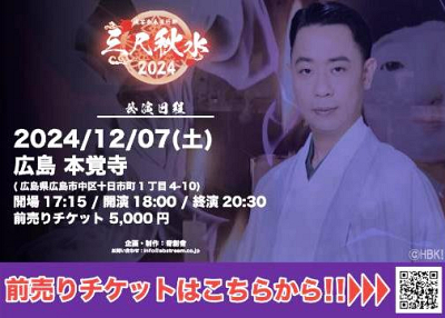怪談師 城谷歩さん 全国行脚2024『三尺秋水』広島公演のご案内(12月7日です)