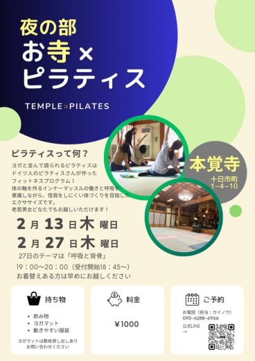 第20回【~心と体に向き合う時間~ お寺×ピラティス】のご案内(2月13日です)