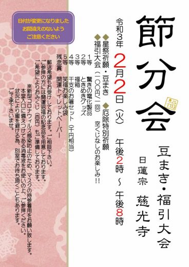 ●節分星祭り・厄除け祈願 二月二日(火) 14時~20時 今年はお参りできない方もいらっ…
