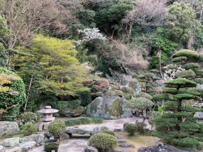 当寺の庭も春の花が次々と咲き始めました。 山際の桜も満開になりましたが左前にあるモミジが…