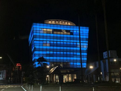 当寺近くの「阿波おどり会館」が夜間ブルーにライトアップされています。 「11月14日」が国…