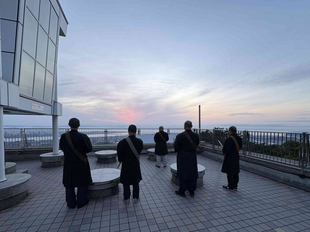 このご聖日に毎年県内寺院有志は、眉山の山頂で昇る朝日に向かって読経し、お題目をお唱えして妙法弘布、世界平和、各寺院の寺門繁栄、檀信徒の皆さまの家運隆昌を祈念しています。
