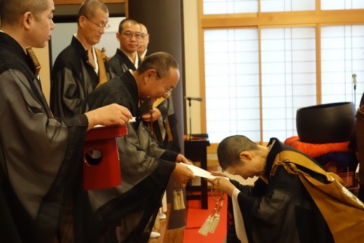 宗務院の当局関係者や来賓のお上人様方に見守られての閉講式の後、聲明導師から一人ひとりに修了証が手渡されました。