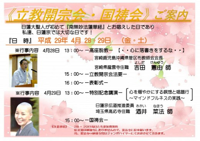 4月28日は日蓮大聖人が初めてお題目をお唱えになった聖日で「立教開宗会」というほうようが行われ…