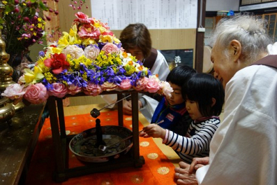 4月8日、今年は土曜日、お釈迦様のご誕生を祝う「花まつり」が行われました! 今年は桜がだいぶ…