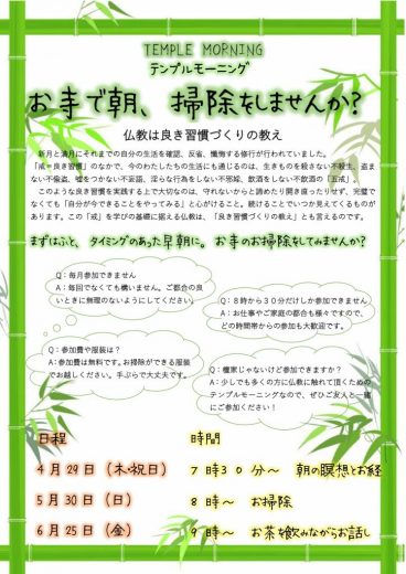 妙國寺では本年4月から初めて実施する企画です。 その名も・・・ #テンプルモーニング…