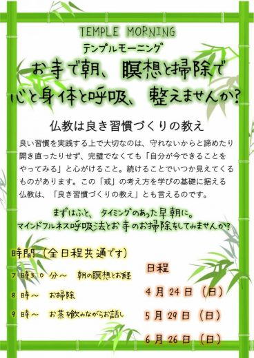 お寺で清々しい1日の始まりを迎えて欲しい。。。 その思いで始めたテンプルモーニングですが、徐々に…