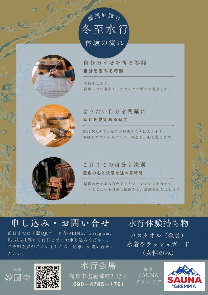 1年の節目の大切な日に、また、大吉祥日に水行で厄除けを行うイベントを企画しました。