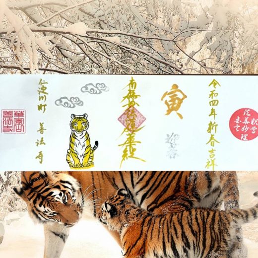 寅年を寿ぐご朱印で、全て金色の文字で書いております。