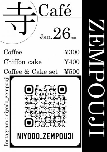 1月26日(日)12時から16時 水質日本一の仁淀ブルーを眺めながら 寺カフェ…