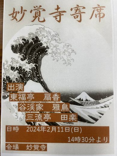 【節分落語会 「妙覚寺寄席」を開催します】 令和6年2月11日(日) 13時から開運だるま…