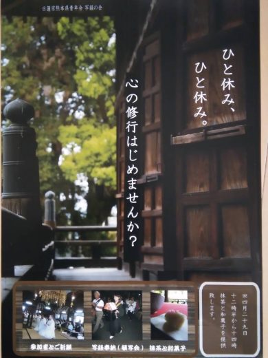 ひと休み、ひと休み。心の修行はじめませんか? 熊本県日蓮宗青年会 第46回 写経の会 参加者募集
