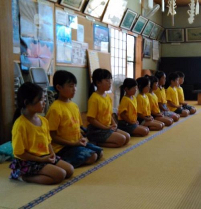 「ワクワク寺子屋」 第2週目の様子です。 7月31日 今回からは、 みんな正座での瞑想。 背…
