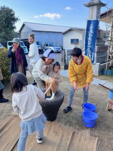 年末の29日(福の日)に境内を開放して餅つきを行ない、老若男女50人が集まりました。 好天にも恵まれ…