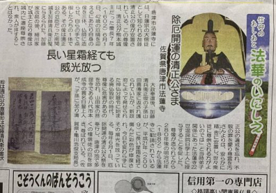 日蓮宗新聞12月1日号で、「法華のいにしえ」が佐賀支局が当番だったので、取材してきました。 日頃よ…