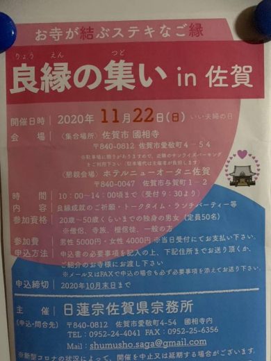 佐賀宗務所では、こんな時代だからこそ 明るい話題を!と企画致しました。 本年11月22日の日曜日、…