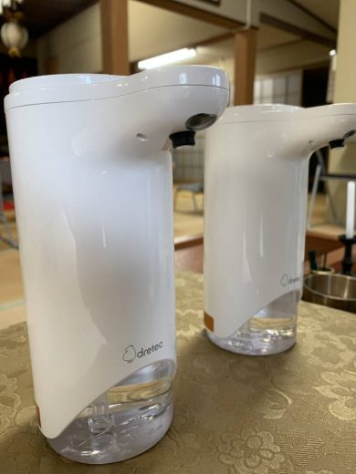 檀信徒のWさんがご主人のご命日にあわせ、親戚のMさんと共に消毒用ディスペンサーと詰め替え用消毒液…
