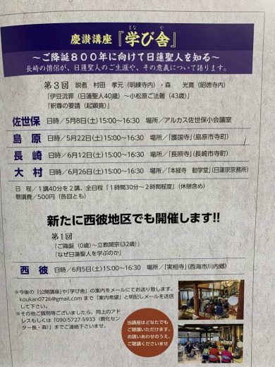 本日(5月8日)15時より アルカス佐世保において慶讃講座『学び舎』が開催されます。 今回(第3回)…