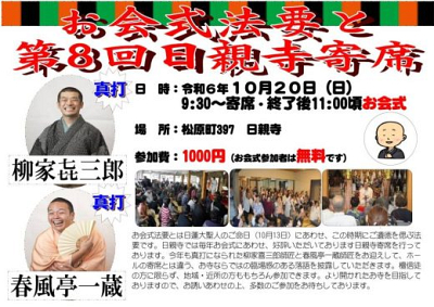 お会式法要&日親寺寄席のお知らせ 10月20日(日) 9時30分より 寄席 寄席終了後…