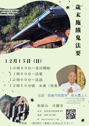 歳末施餓鬼法要のお知らせ 令和6年12月15日(日) 11時00分より 法要 …