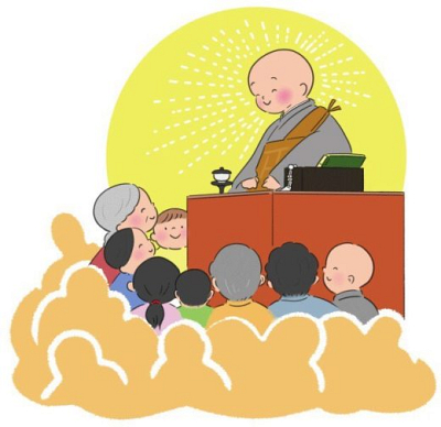 一段高い「高座」とよばれる台に座った僧侶が、所作を行い、お経文や御遺文の一節を解説しながら法…