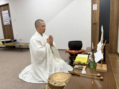 1月13日 長崎市明練寺の村田孝元上人にご来山いただき、新設した信徒会館とトイレのお祓いを…