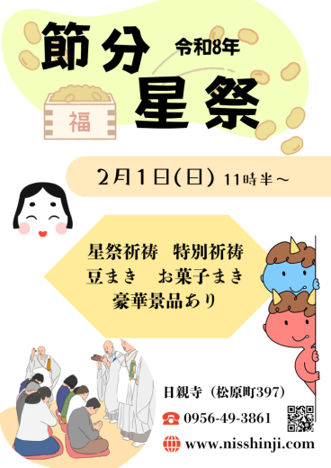 令和8年2月1日(日)11:30より 節分星祭大祈祷会を執り行います。 節分星祭とは…