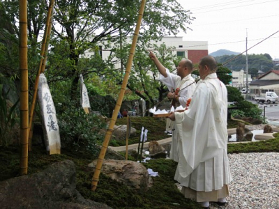 みなさんこんにちは。今日は「妙玄庭(お題目の庭)」の入魂式でした。こちら川棚町はかなり雨が降り…