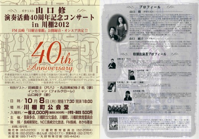 10/8(月)ギタリスト山口修演奏活動40周年記念コンサート