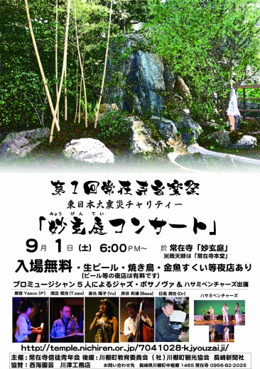 第1回常在寺音楽祭 東日本大震災チャリティー「妙玄庭コンサート」を開催します。(8/3後援、協賛…