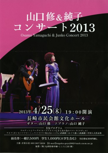 2013年4/25(木) 19:00開演 於 長崎市民会館文化ホール ギター:山口修 ソプラノ …
