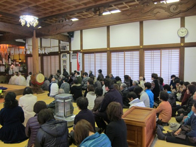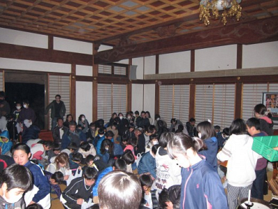 当山の豆撒きは夜に行います。お勤め、ご祈祷、豆撒きを行ったのですが、 地域の方や親子連れを含め…