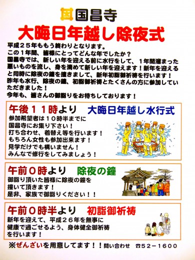 今年も大晦日年越し除夜式を行います! この大晦日年越し除夜式は、国昌寺の住職が今までの修行をし…