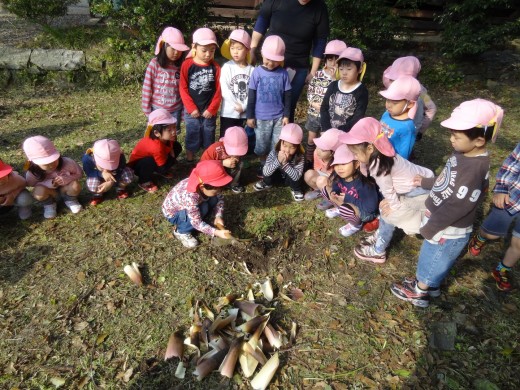 子供達は、土から頭を出してるたけのこに大興奮!!